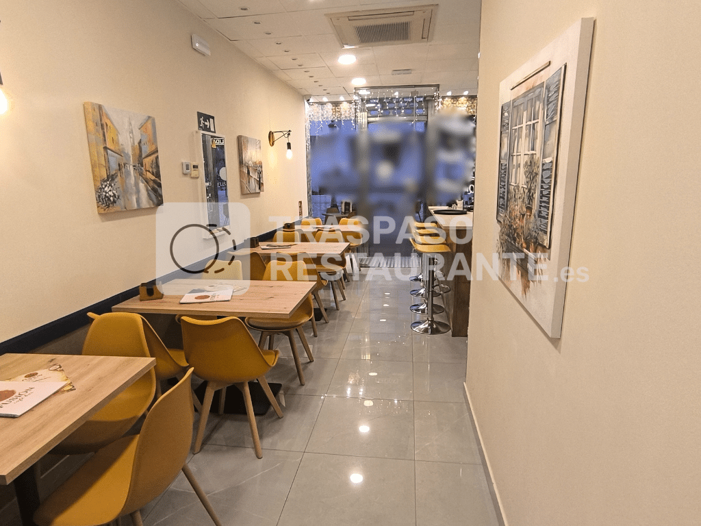 Dispone de una superficie interior de 76 m², aforo autorizado para 24 personas en interior y una terraza exterior con capacidad para 36 comensales, ampliable hasta 56 o más según autorización municipal. Cuenta con 4,3 metros lineales de fachada, dos lavabos (uno adaptado) y no dispone de salida de humos, acorde a la actividad desarrollada.