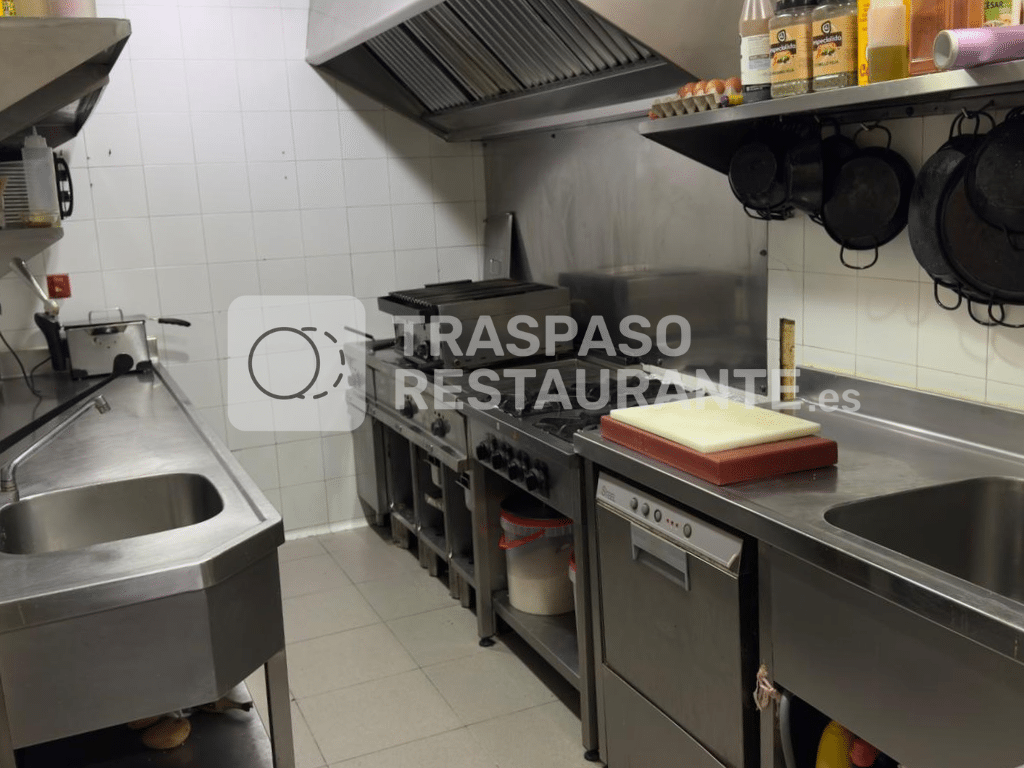 Este restaurante, lleva operando más de 3 años con cocina abierta de 12h a 24h. Tiene una superficie de 170 m² más un almacén de 45 m², con aforo para 80 personas distribuidas en dos salones, 4 baños y una fachada de 12 metros lineales. Fue reformado recientemente (marzo de 2024) con una inversión de 16.000 €. El alquiler mensual es de 2000 €, con un contrato de 10 años y sin deudas con el arrendador, quien ha confirmado su disposición a ceder el contrato en las mismas condiciones.