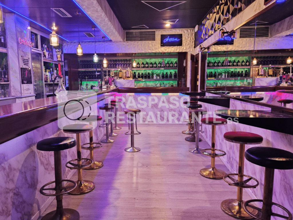 Ubicado en Les Corts, este local insonorizado de 125 m² cuenta con un aforo legal de 64 personas, 2 baños y todo el equipamiento necesario para abrir de inmediato: barra de coctelería, sistema de sonido profesional, iluminación, aires acondicionados nuevos, televisores y mobiliario moderno. Su concepto actual de bar musical no lo requiere, lo que permite una operativa sencilla y eficaz.