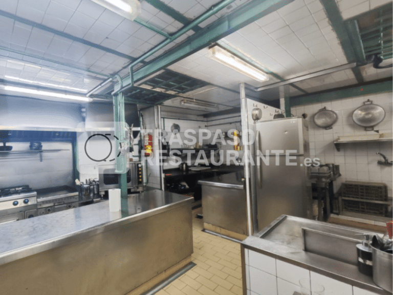 Este espacioso restaurante de 180 m², repartido en dos plantas, dispone de un aforo interior de 70 personas. En la planta baja se encuentra la barra operativa y una sala amplia, mientras que en la planta superior hay un segundo comedor, almacén de 30 m² con cámara frigorífica y zona de lavandería equipada con maquinaria industrial. La cocina, de 33 m², cuenta con salida de humos y equipamiento profesional completo: fuegos, plancha, freidora, cortadora y máquina de vacío.